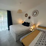 Het 1-badkamer appartement heeft een terras en een zitruimte en biedt ook uitzicht op het zwembad. De accommodatie is ook ingericht met een bank. Gite Sas Ben & Nad bestaat uit 1 slaapkamer. Het heeft 1 badkamer, die met een apart toilet en een douche is uitgerust. Daarnaast vindt u er een haardroger.